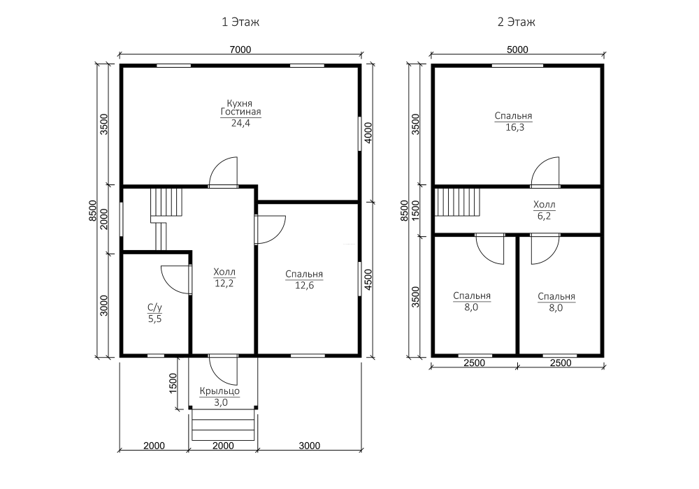 Сруб с мансардой: 1-ый этаж- 2,5 м. (18 венцов) 2-ой этаж (мансарда)- 2,4 м. Сруб в полтора и два этажа: 1-ый этаж 2,5 м ±4 см. (18 венцов) 2-ой этаж 2,5 м ±4 см. каркасные аттиковые стены (боковые) высотой 1,5 м. в полутораэтажном доме 2,5 м ±4 см (поднят брусом на 18 венцов) в двухэтажном доме. |
