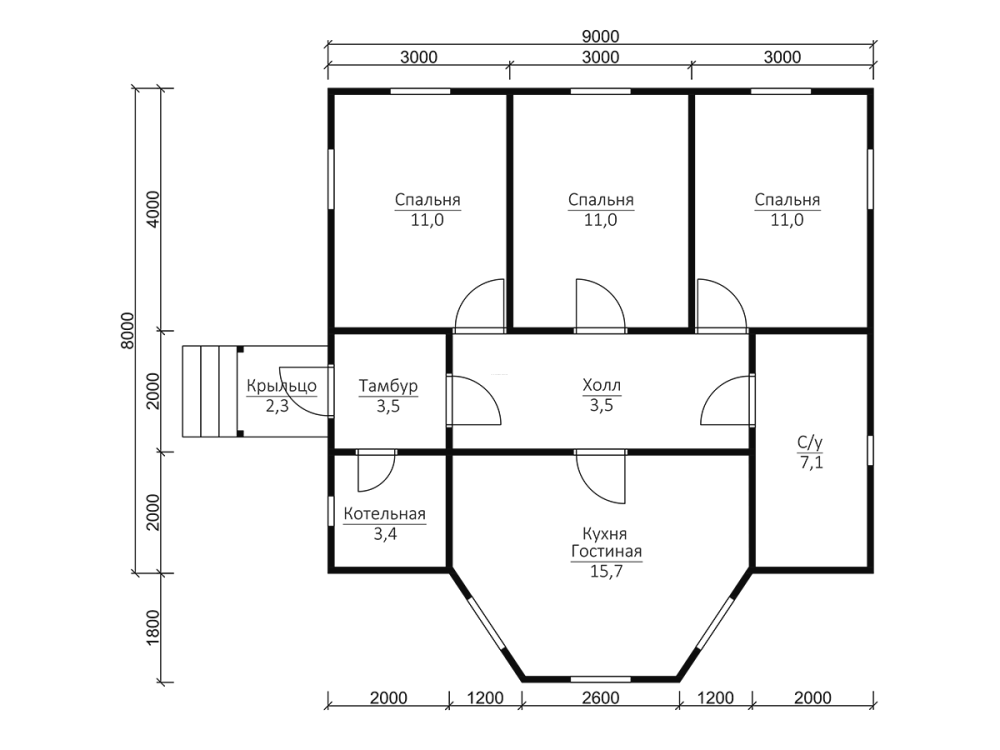 | Крыша | Двускатная, ломаная или вальмовая в соответствии с проектом. | |